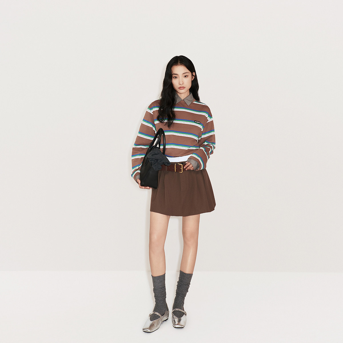 商场同款森马半身裙女磨毛纯棉长裙2025秋新款纯色伞裙百搭20002