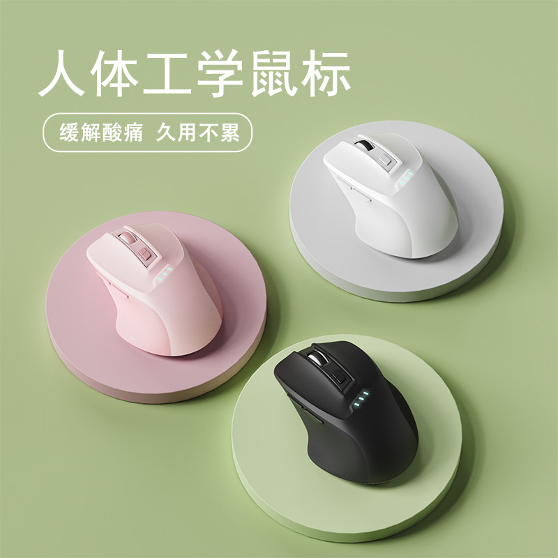 人体工学鼠标无线蓝牙有线女生高颜值办公可充电款静音笔记本电脑