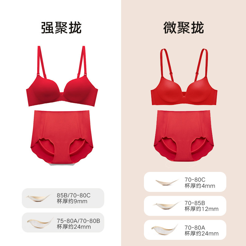 曼妮芬小胸聚拢文胸内裤性感无痕内衣女舒适无钢圈本命年服红套装