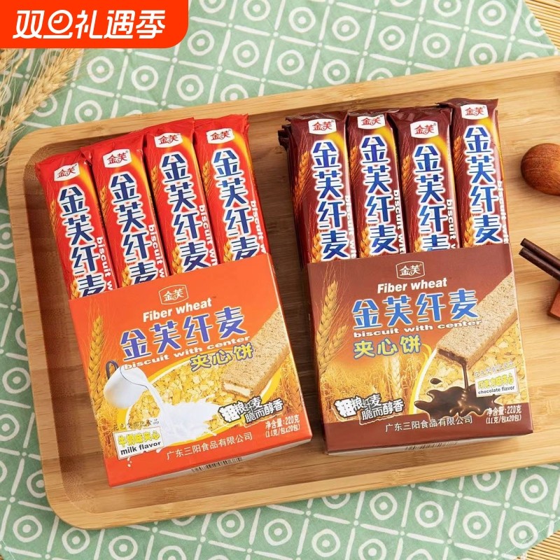 金芙纤麦夹心饼奶油味巧克力味威化饼干长条怀旧零食80后经典童年