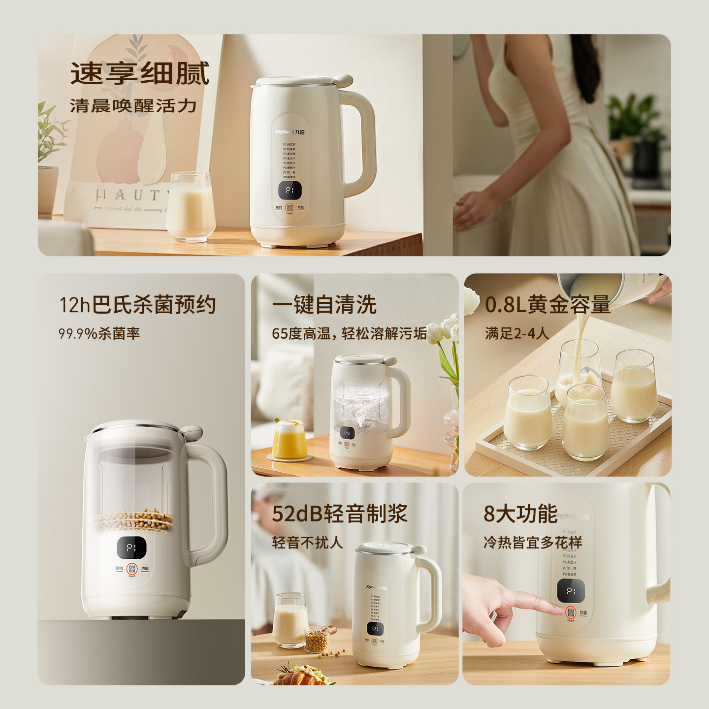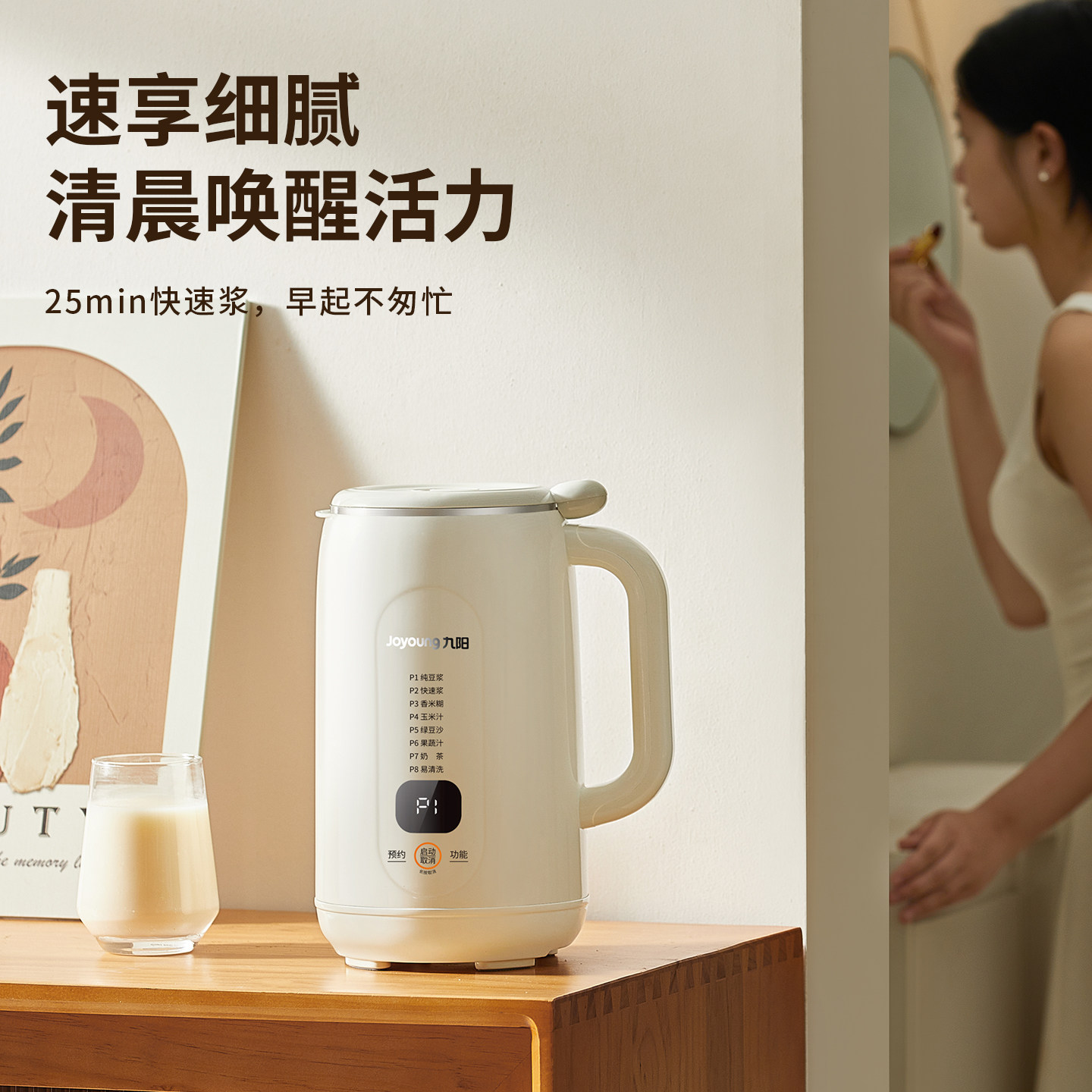九阳豆浆机家用小型迷你轻音免煮免滤多功能破壁机智能预约料理机
