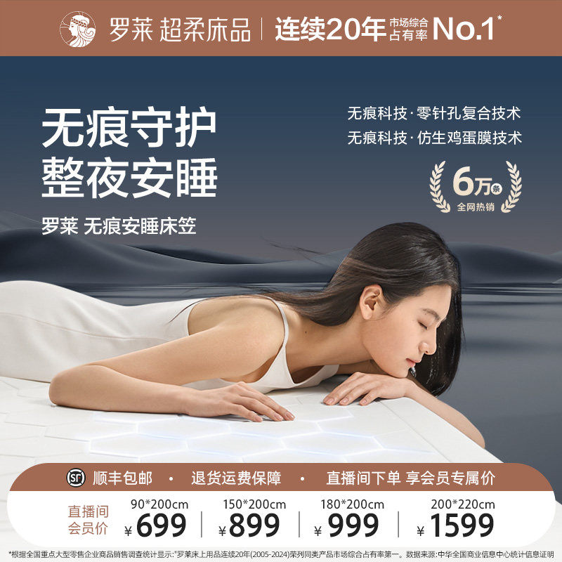 罗莱无痕安睡床笠母婴级A类隔尿防水床护垫软垫席梦思保护罩防螨