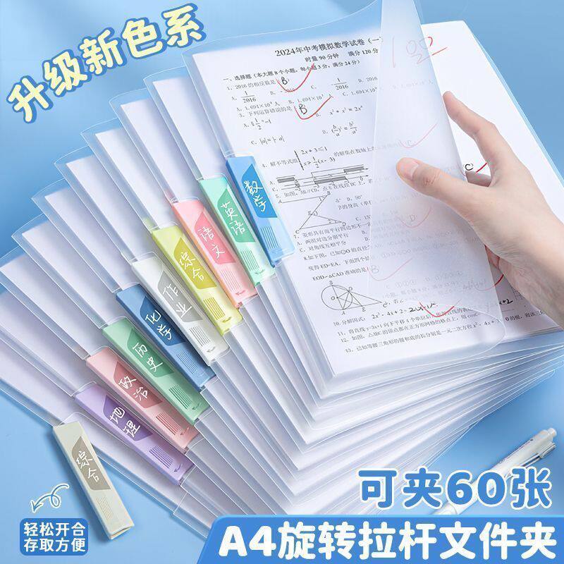 A4旋转升级透明拉杆文件夹扣式试卷学生侧开文件夹文件框文件栏