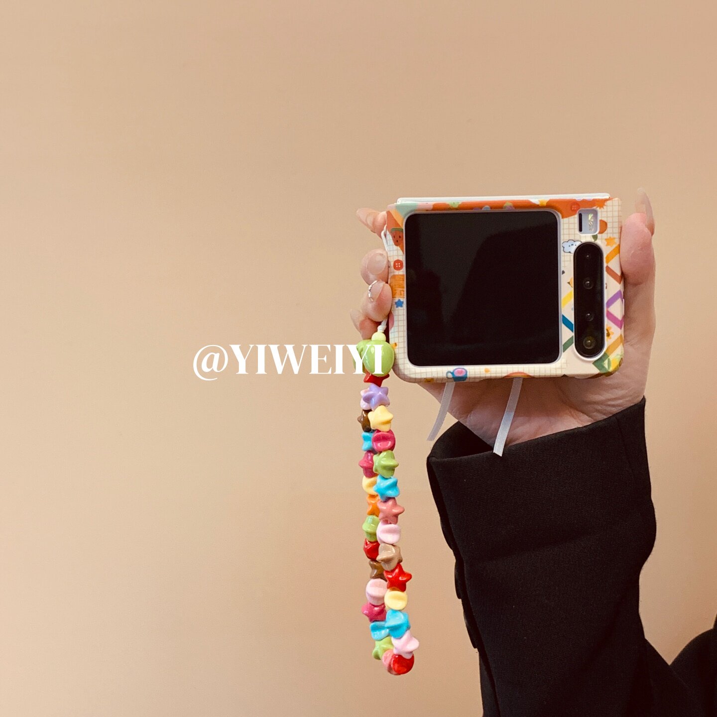 依维意 适用于荣耀magicvflip2手机壳pocket2拼色卡通格子折叠屏mixflip2蝴蝶结大花篮novaflip彩色星星挂绳