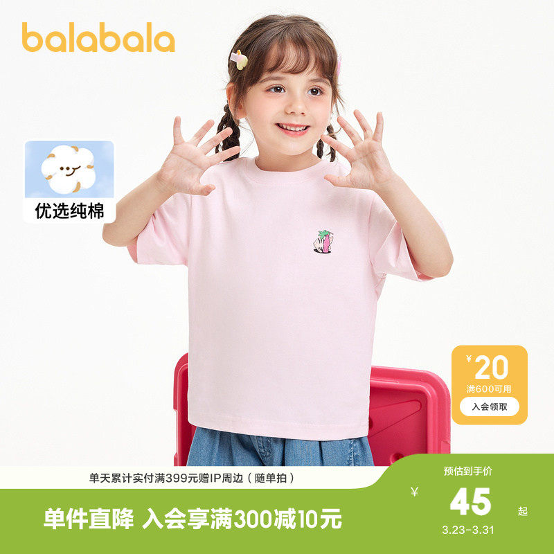 巴拉巴拉童装儿童上衣男童t恤女童短袖春夏装大小童亲子装潮休闲