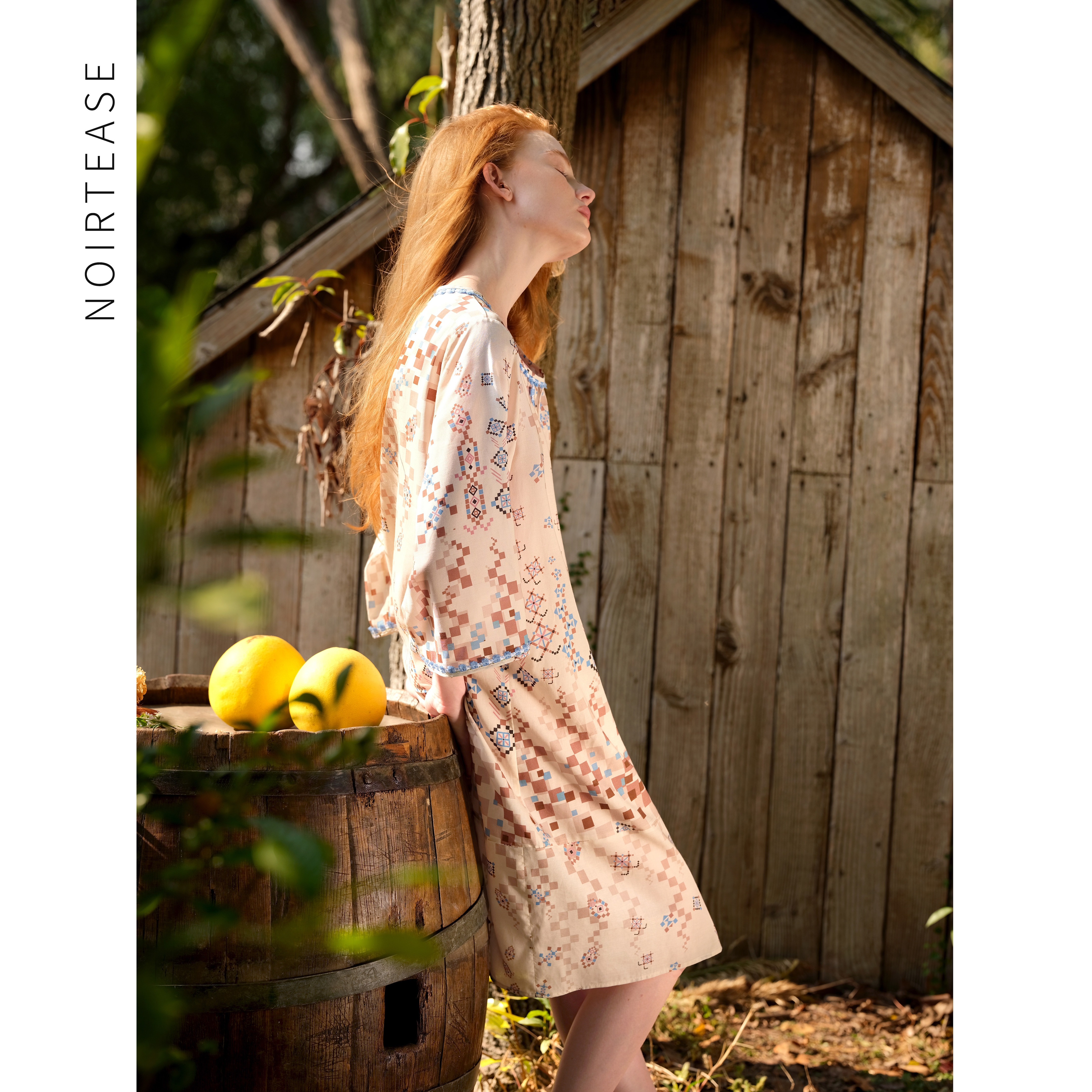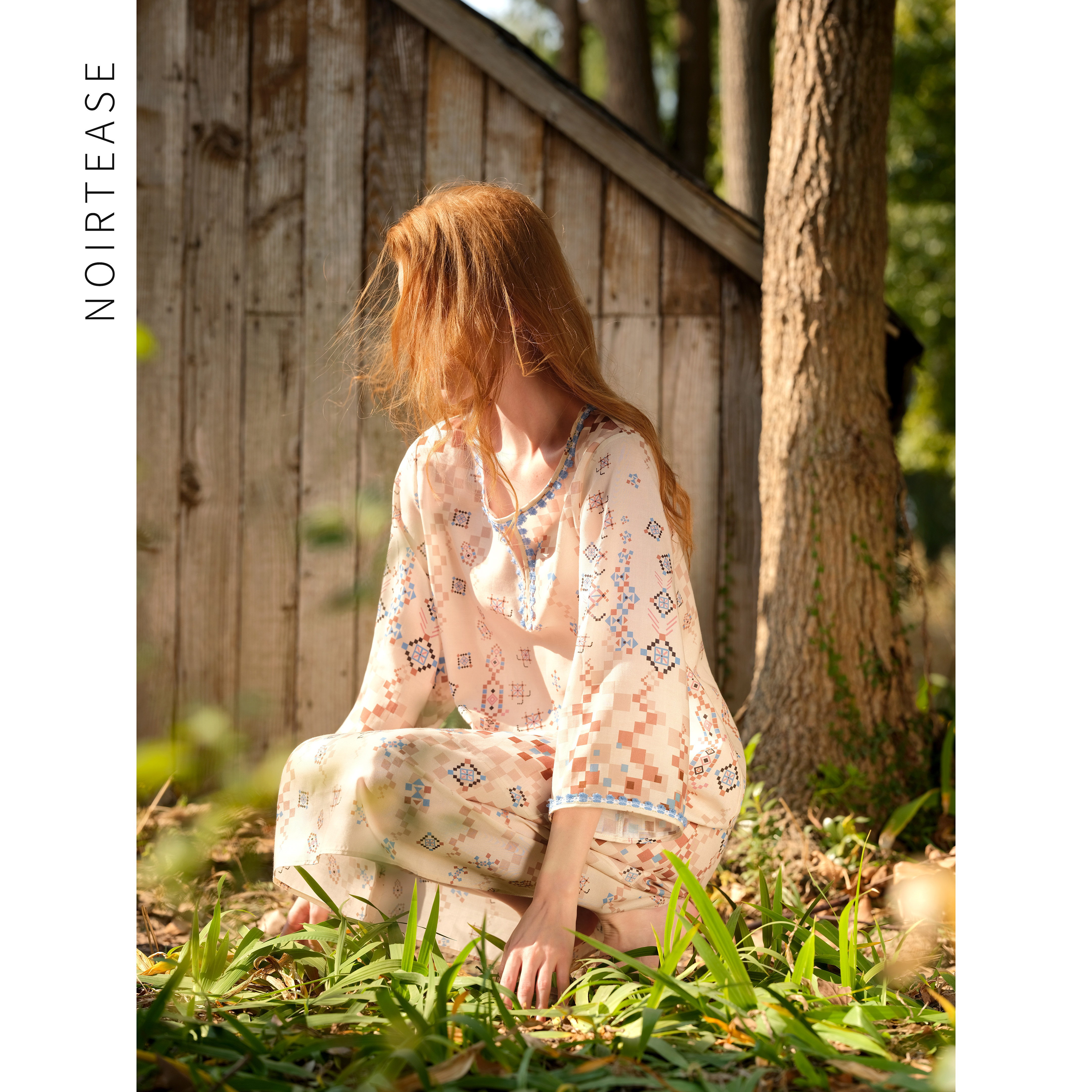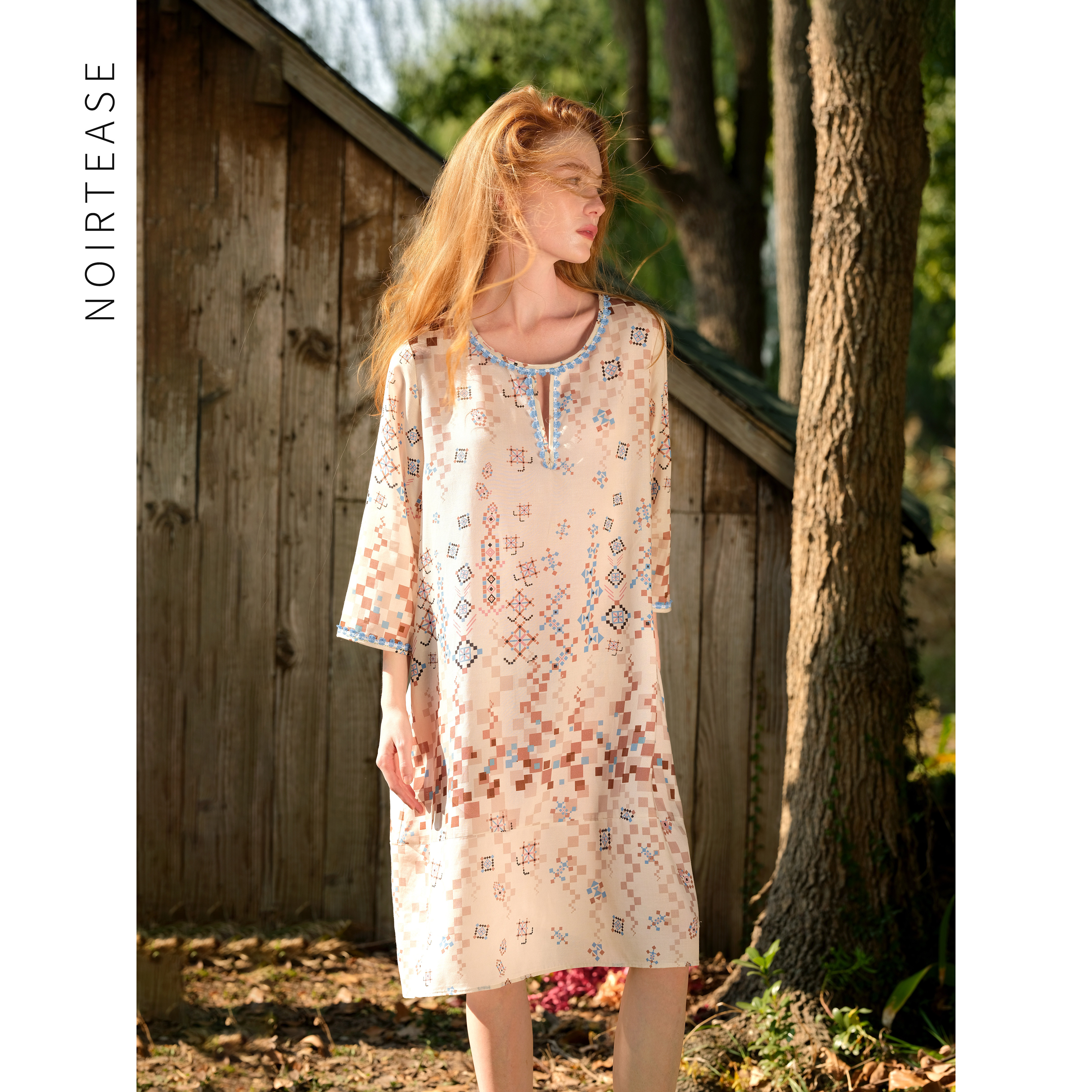 新款春秋薄款天丝亚麻短袖睡裙波西米亚风蕾丝睡衣女夏法式家居服