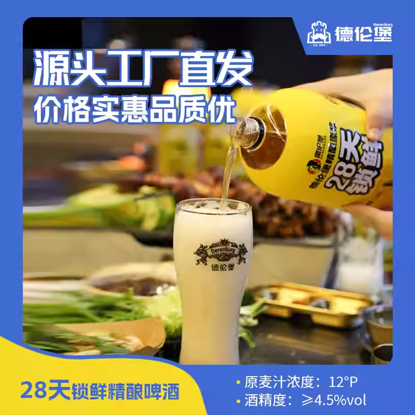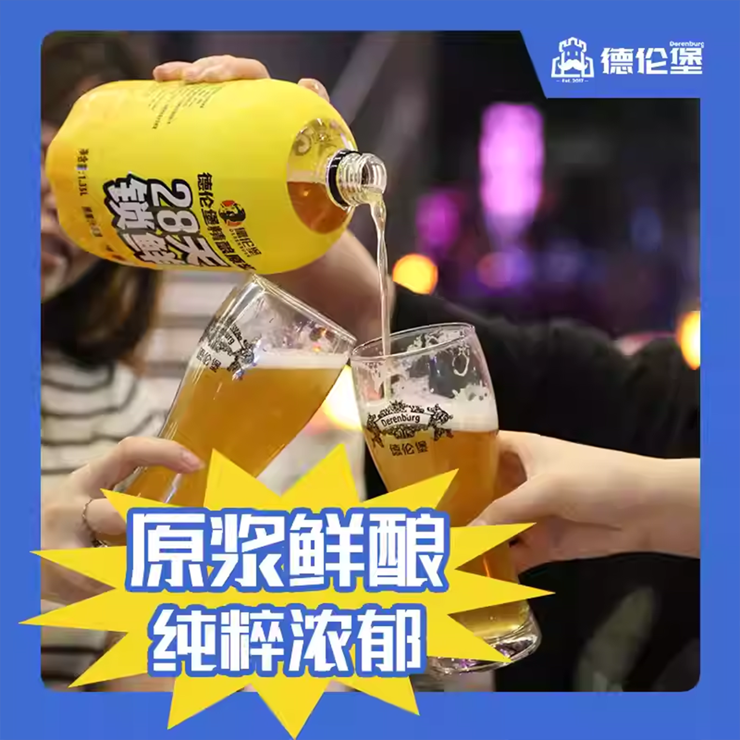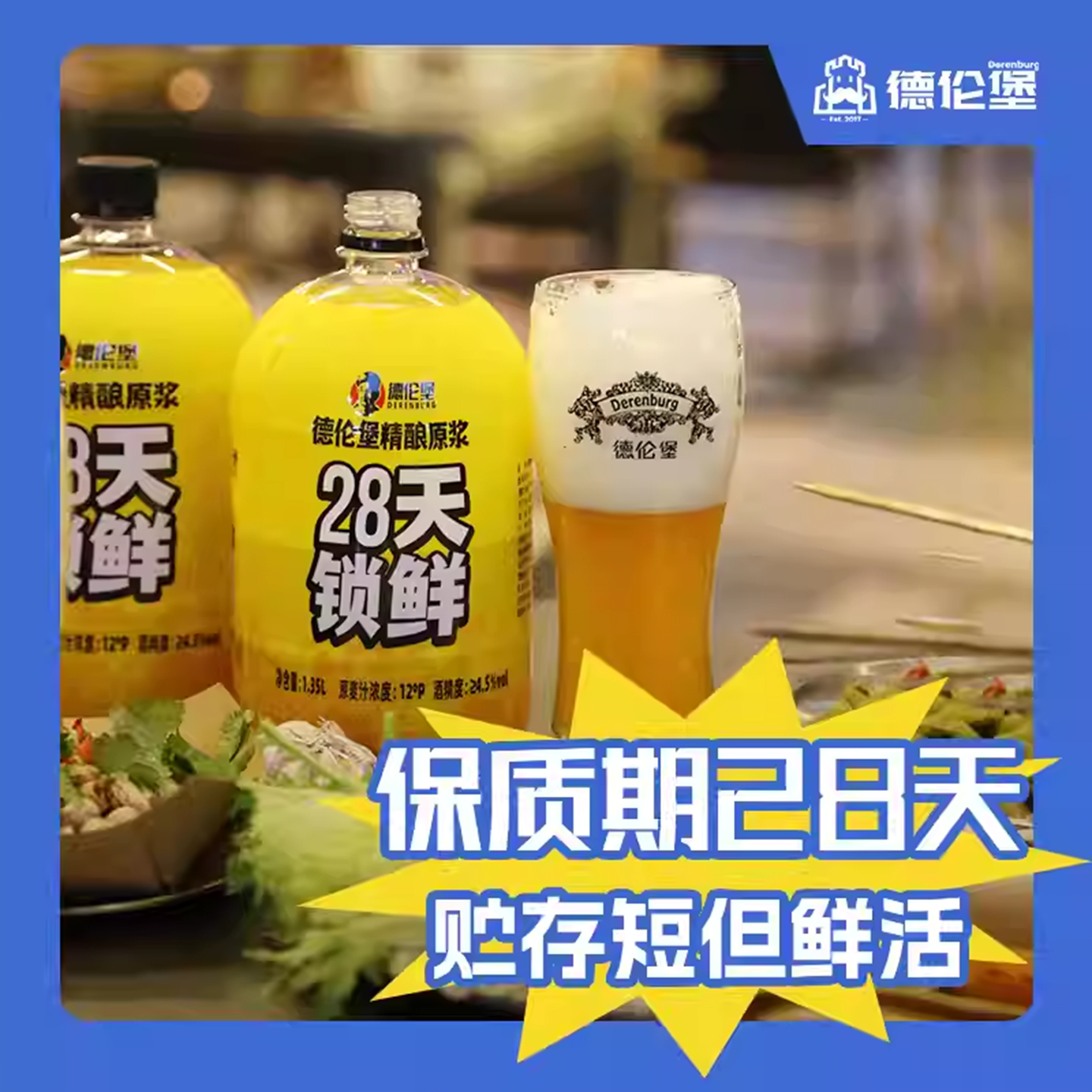 德伦堡精酿原浆啤酒 4.5°28天12°P鲜啤全麦啤酒小麦1.35L*4