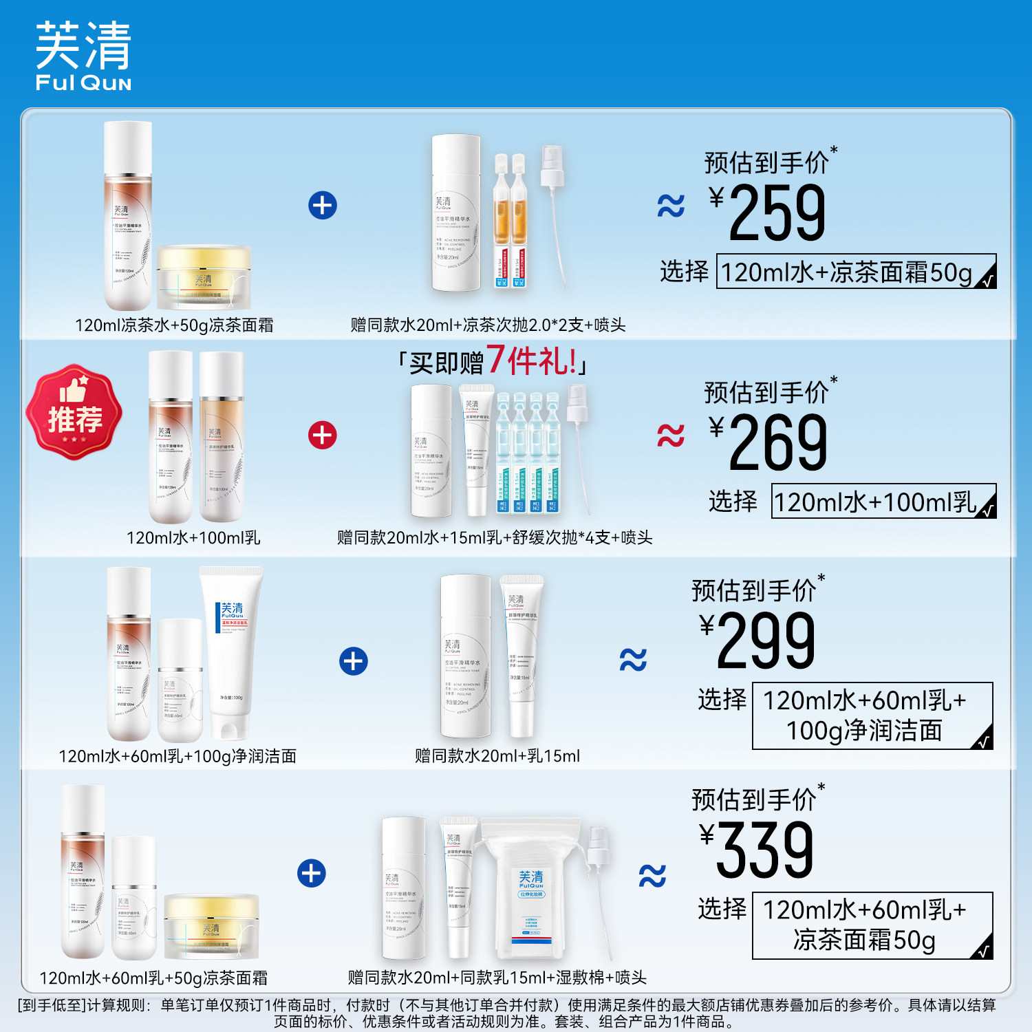 芙清凉茶水乳套装敏感肌控油油痘肌祛痘闭口舒缓补水保湿夏旗舰店