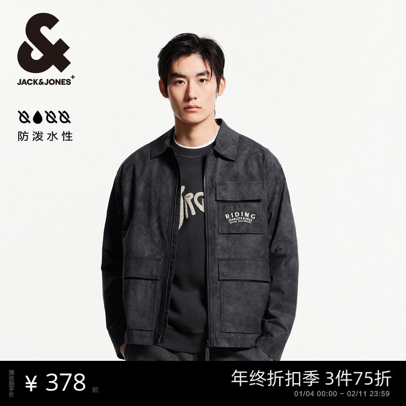 杰克琼斯男装春秋季胸前刺绣衣身扎染多口袋25年宽松尖领夹克外套