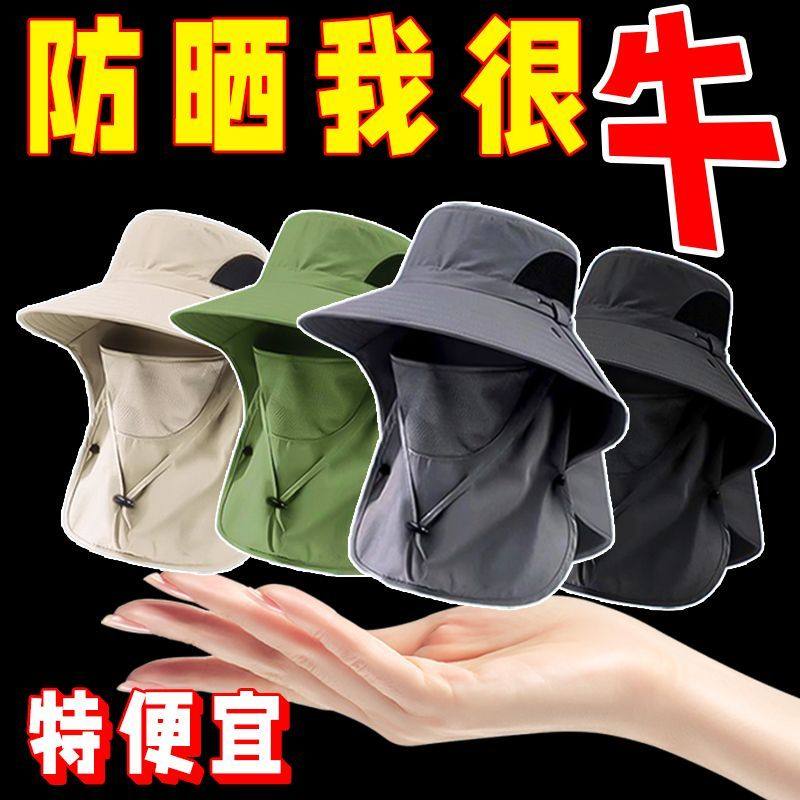 帽子男士遮脸护颈大帽檐新款防晒遮阳帽钓鱼帽户外夏季太阳帽登山