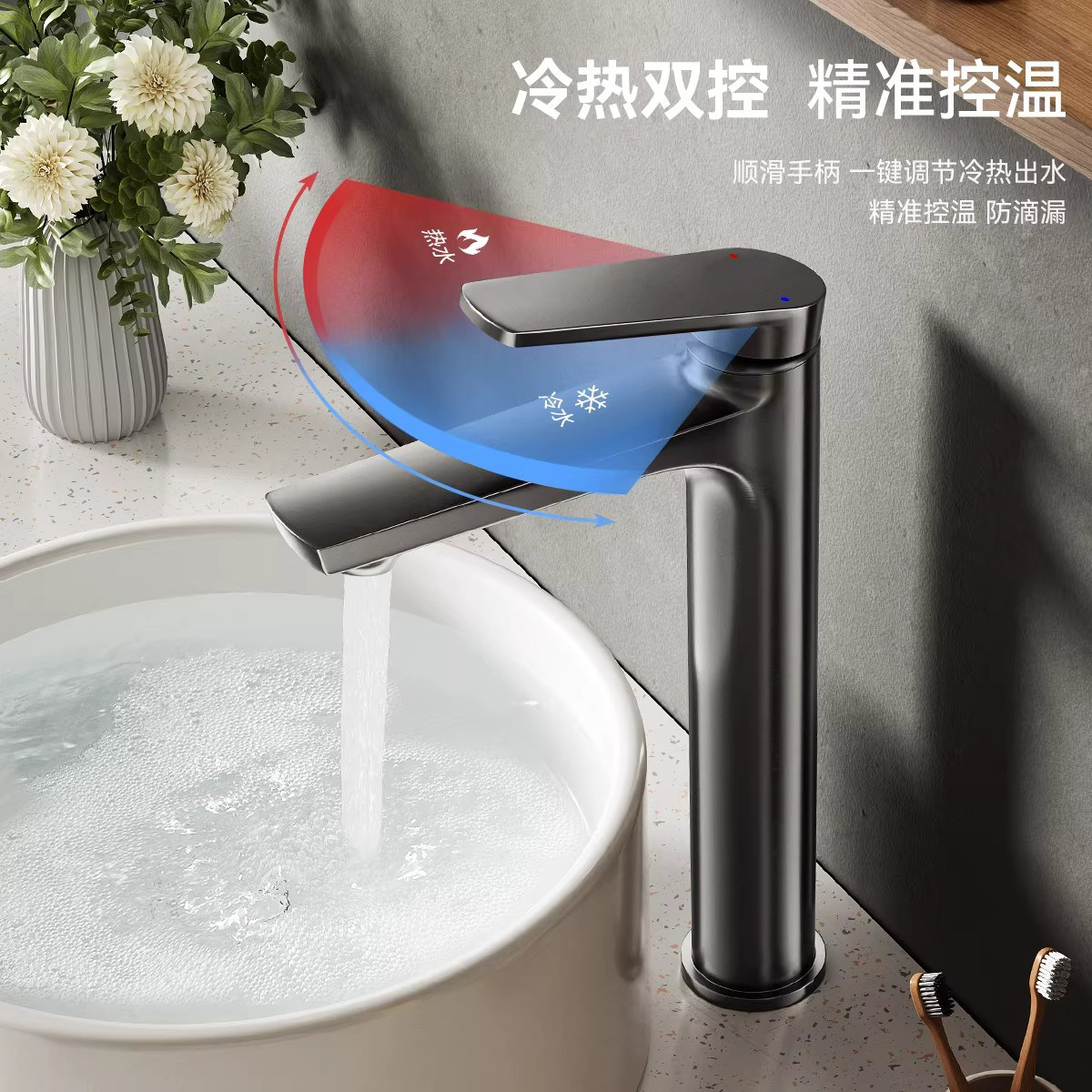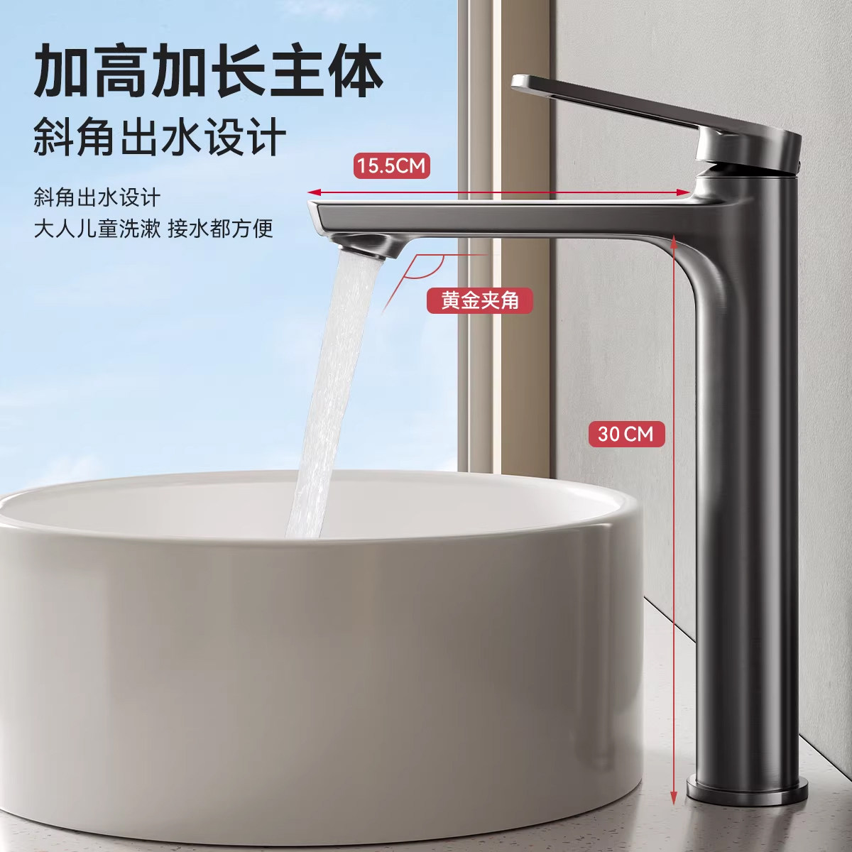 卫生间水龙头冷热台上盆洗脸盆台盆面盆加高加长洗手盆全铜静音