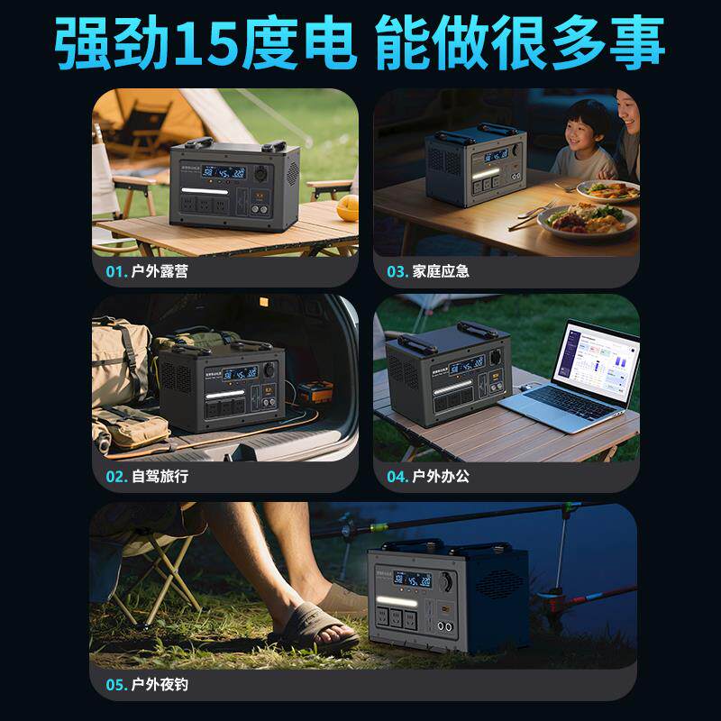 电小二户外电源1度电大容量1500W移动备用220v便携式蓄电池磷酸铁锂大功率ups不间断快充应急储能车载摆摊