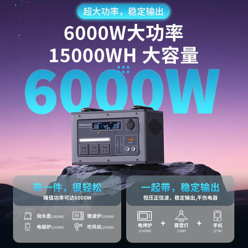 电小二户外电源【2度电更轻更小】2200W大功率移动220v便携式蓄电池储能大容量停电应急自驾车载露营电瓶摆摊