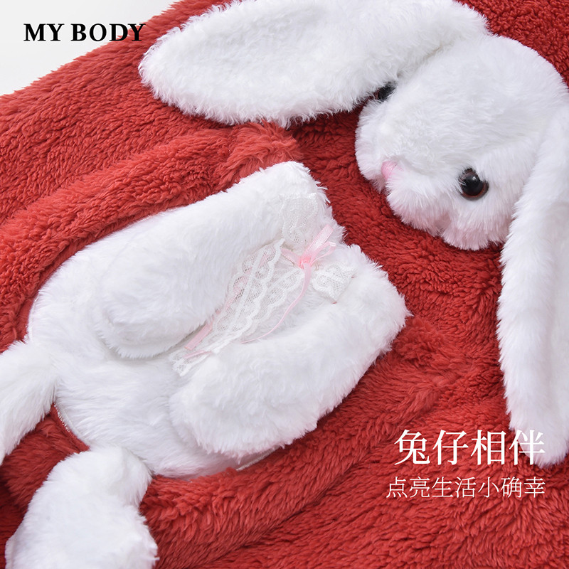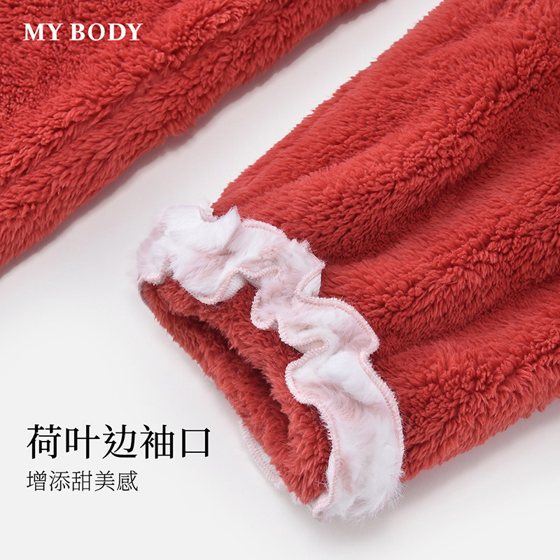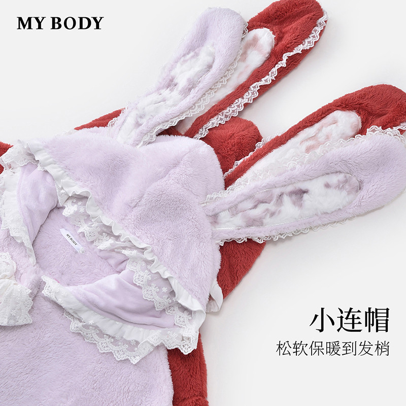 商场同款MYBODY冬季新款睡裙甜美连帽法兰绒浴袍长款家居睡袍女款