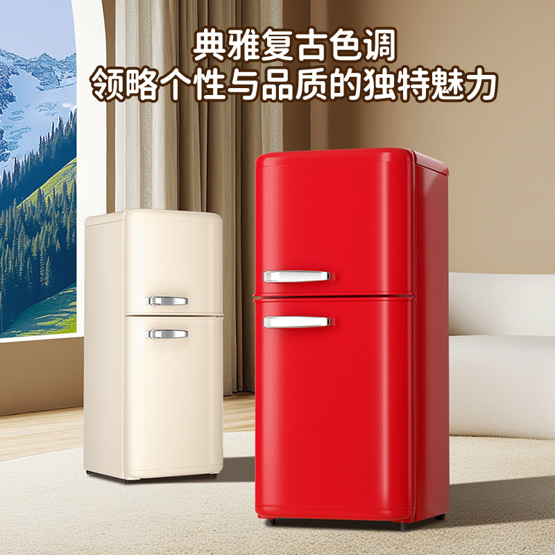 志高复古冰箱家用小型双门迷你节能省电宿舍租房冷藏冷冻一级能效