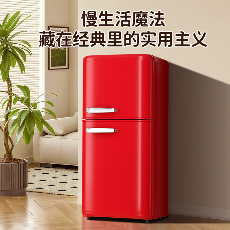 德国MESG复古冰箱家用红色小型一级能效节能高颜值网红双门双温