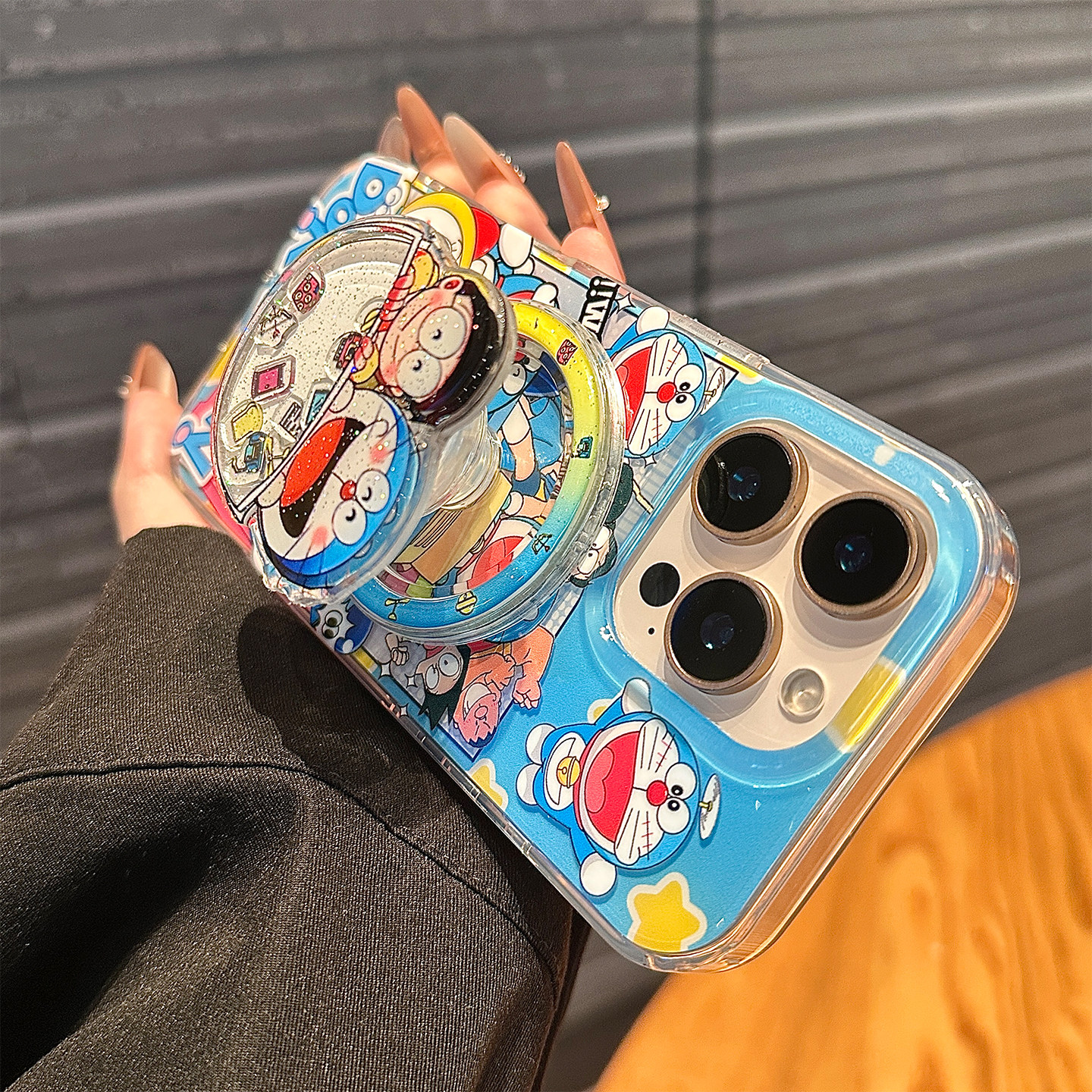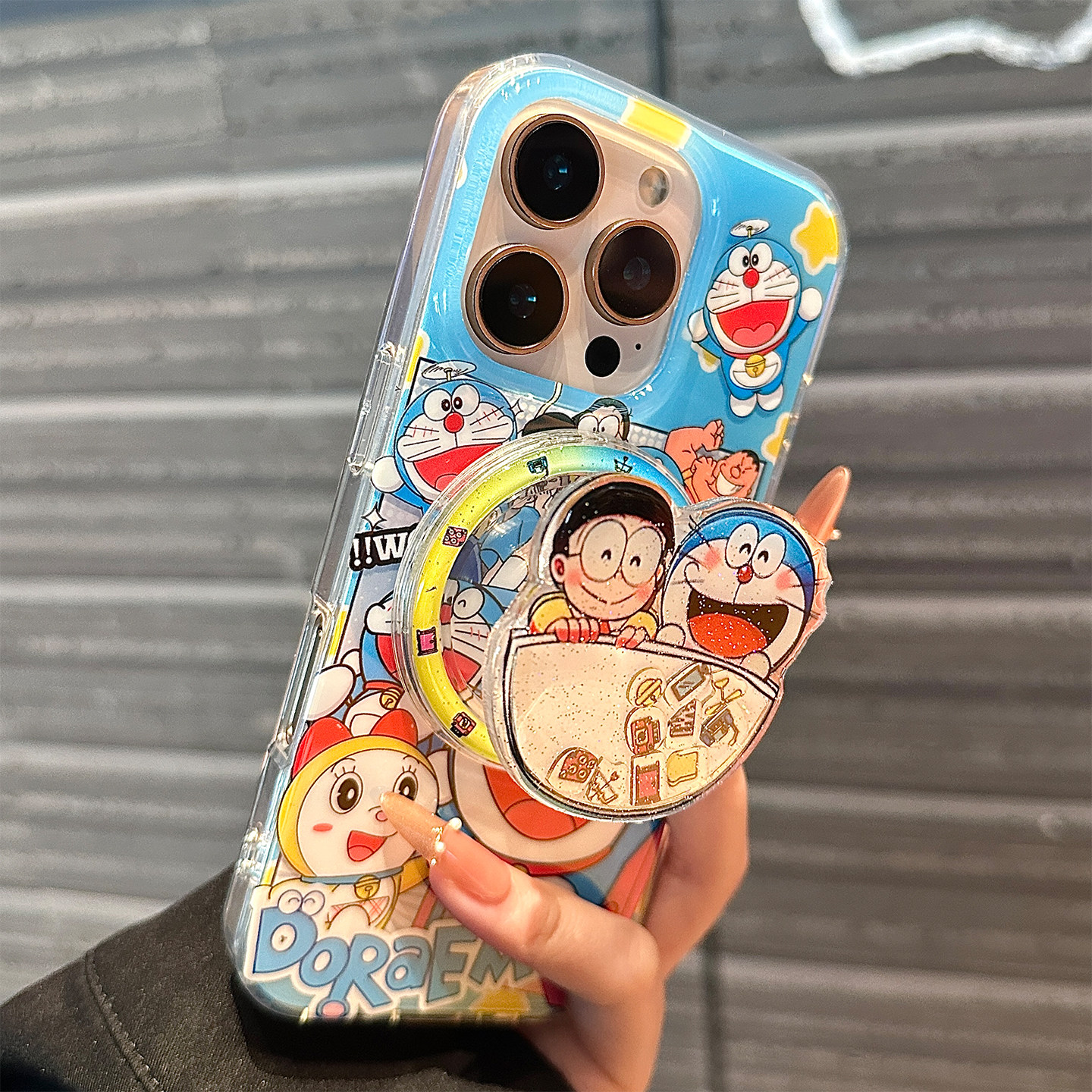 可爱蓝胖子机器猫适用苹果16promax手机壳新款哆啦A梦14pro保护套女13全包防摔15创意支架小众高级感iphone17
