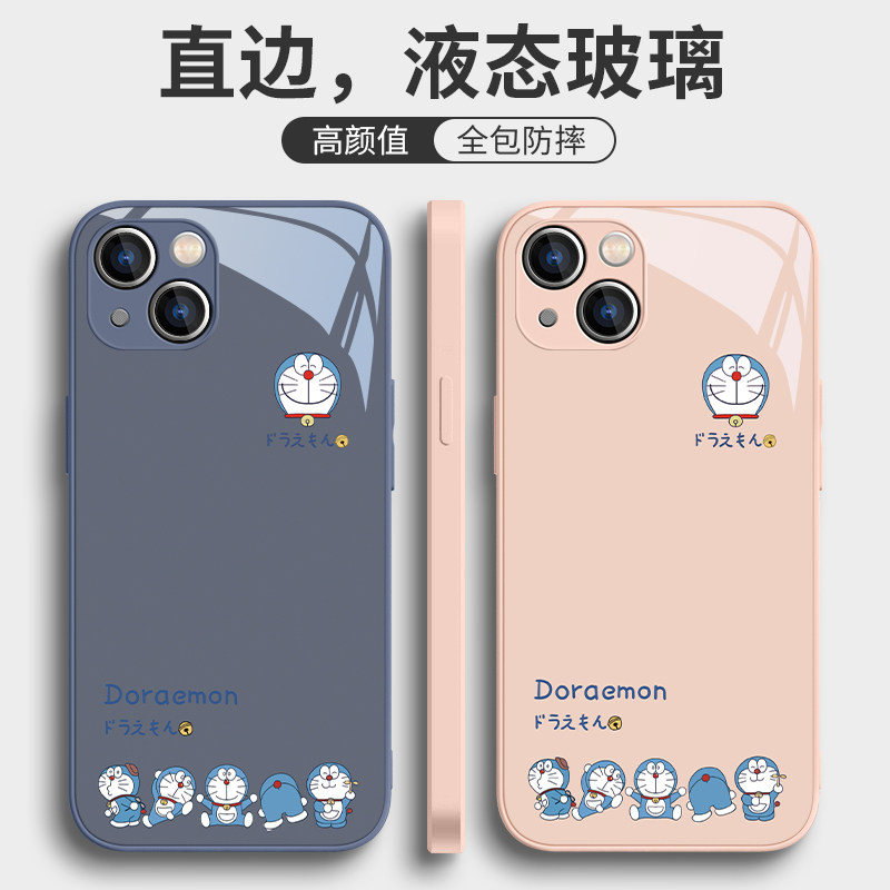 适用iphone17手机壳哆啦A梦苹果15/14新款苹果16苹果13可爱12mini/11promax高级感xsmas蓝胖子xr简约x玻璃xs