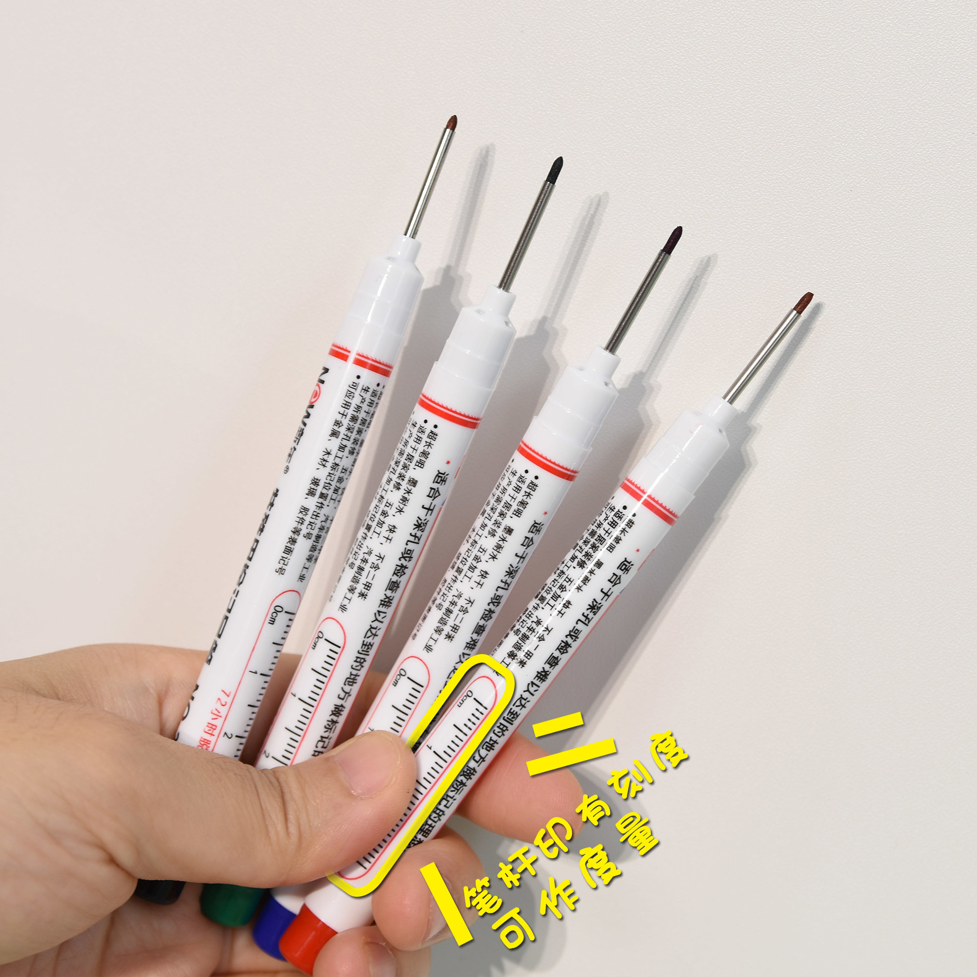 长头记号笔油性木工专用瓷砖特殊用途工地长嘴黑色深孔划线细加长画线计号笔深色板材打孔防水防油白色不掉色