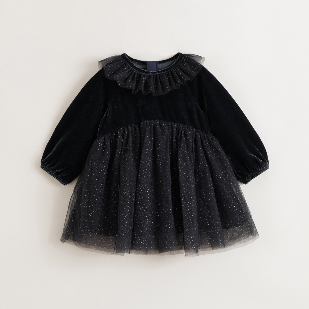 优雅丝绒星月网纱拼接 甜美荷叶边 纯棉内衬