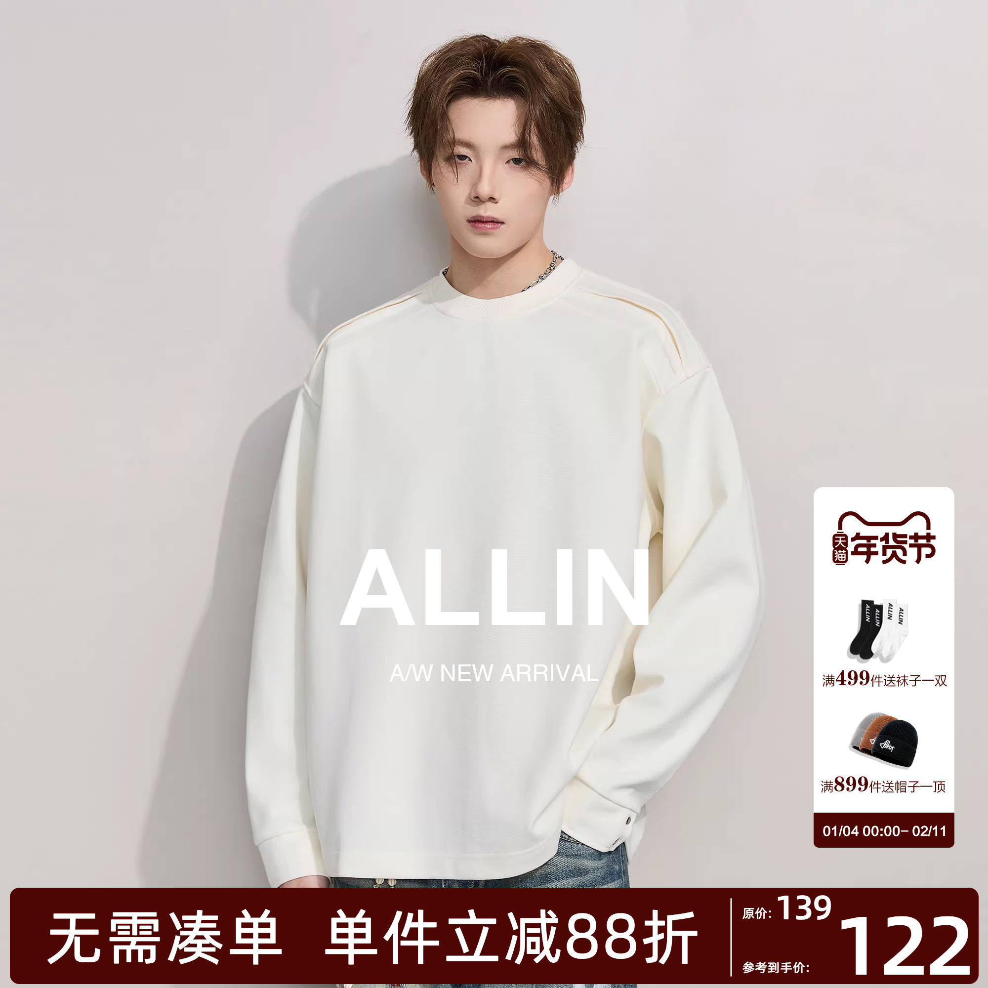 ALLIN 圆领纯色卫衣男秋冬季情侣无帽套头打底衫休闲宽松运动上衣