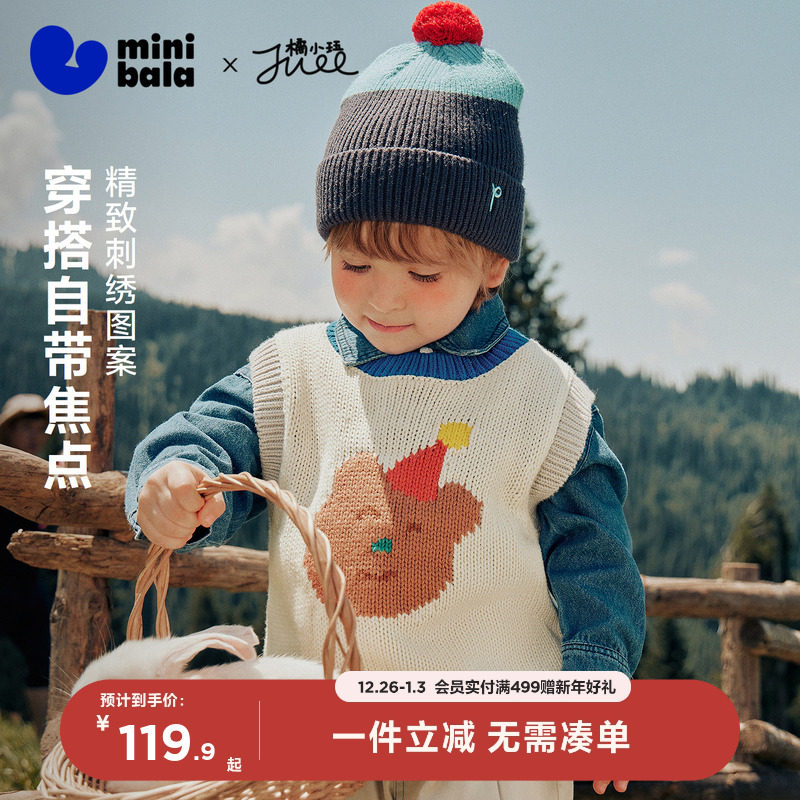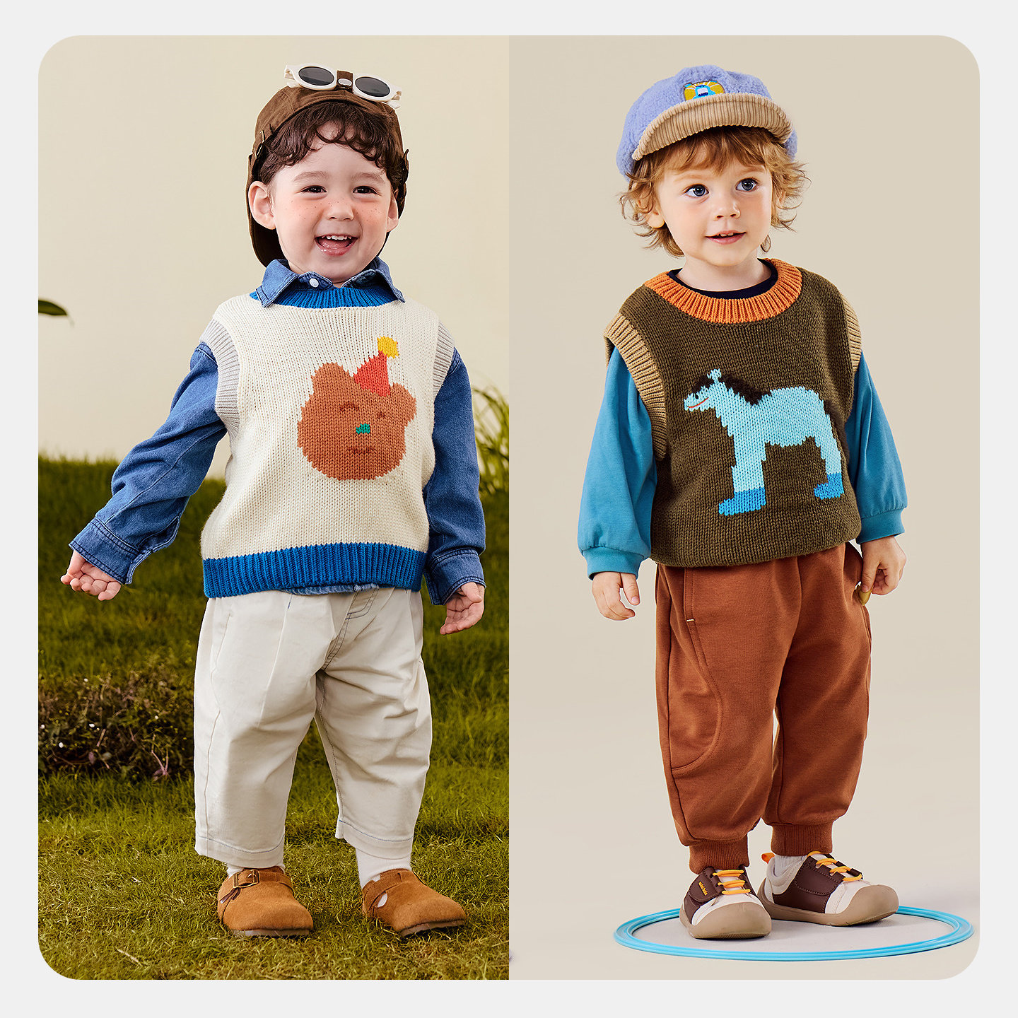 【艺术家联名】迷你巴拉男女童宝宝针织背心萌趣刺绣图案2025秋新