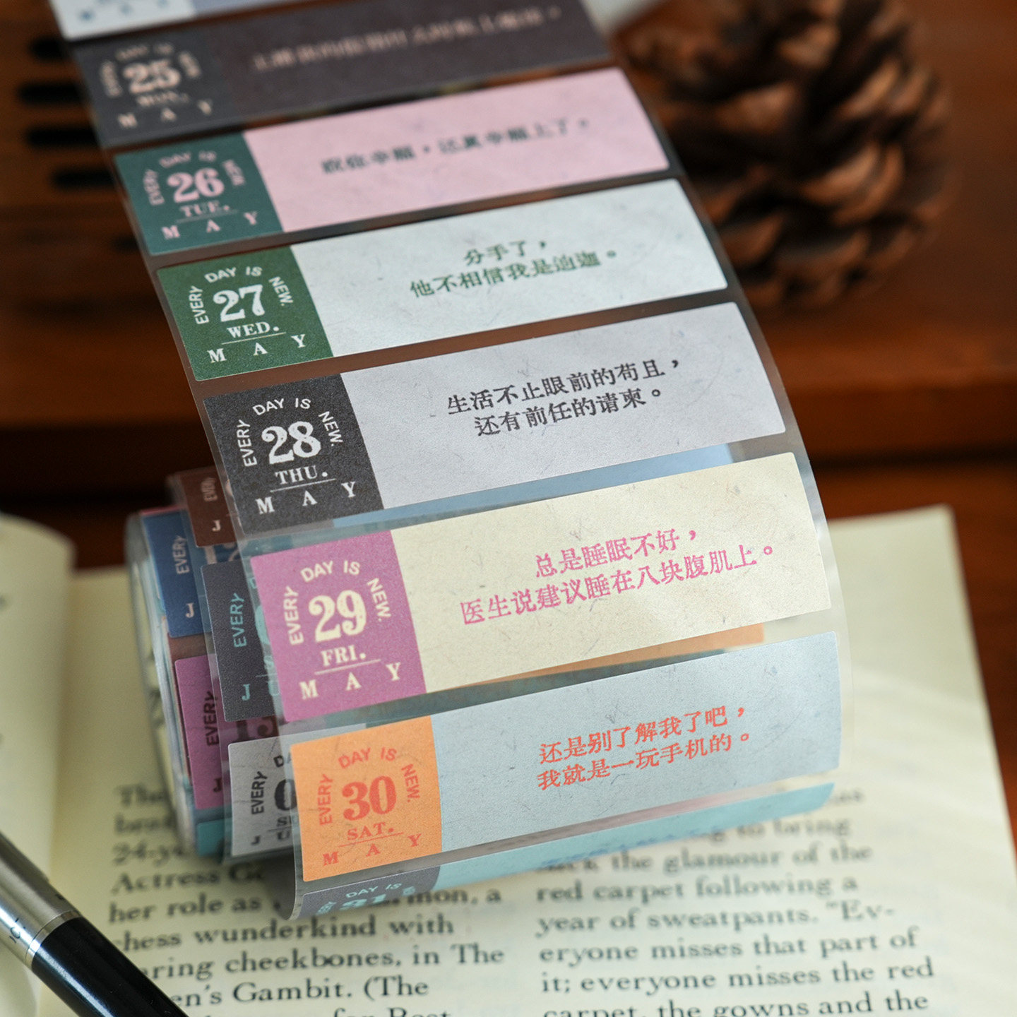 小日子不翻篇 2026年新款日付复古艺术文字年历胶带手帐素材贴纸