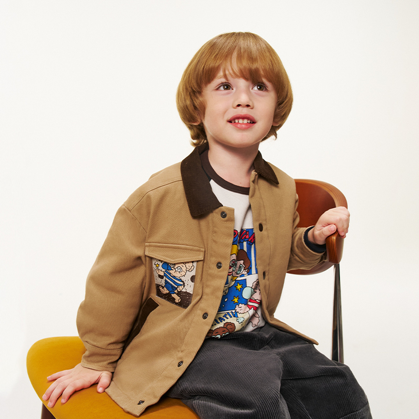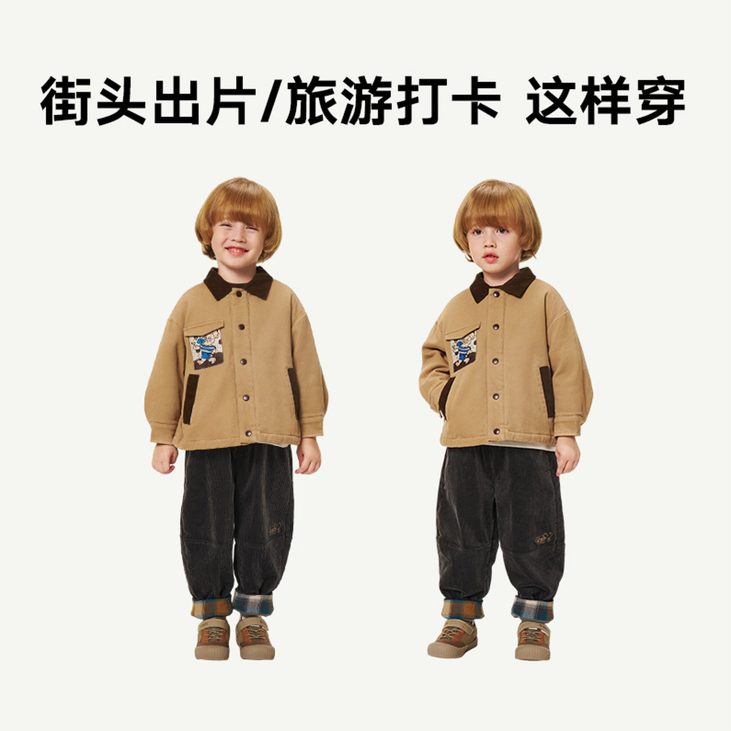 马拉丁童装儿童棉服25冬装新款男童艺术家设计感织唛撞色棉夹克