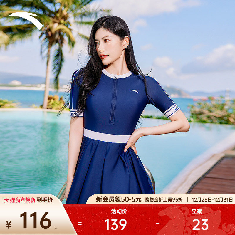 安踏小蛮腰丨运动泳衣女士新款显瘦高级连体泳装度假温泉泳衣正品