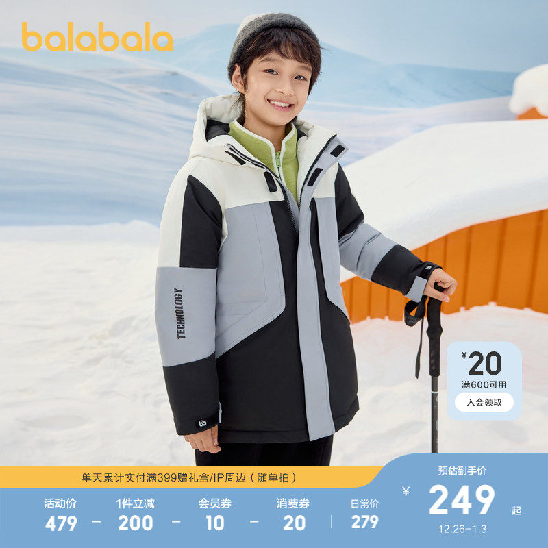 巴拉巴拉童装冬装羽绒服男童中大童保暖时尚外套连帽撞色拼接潮酷