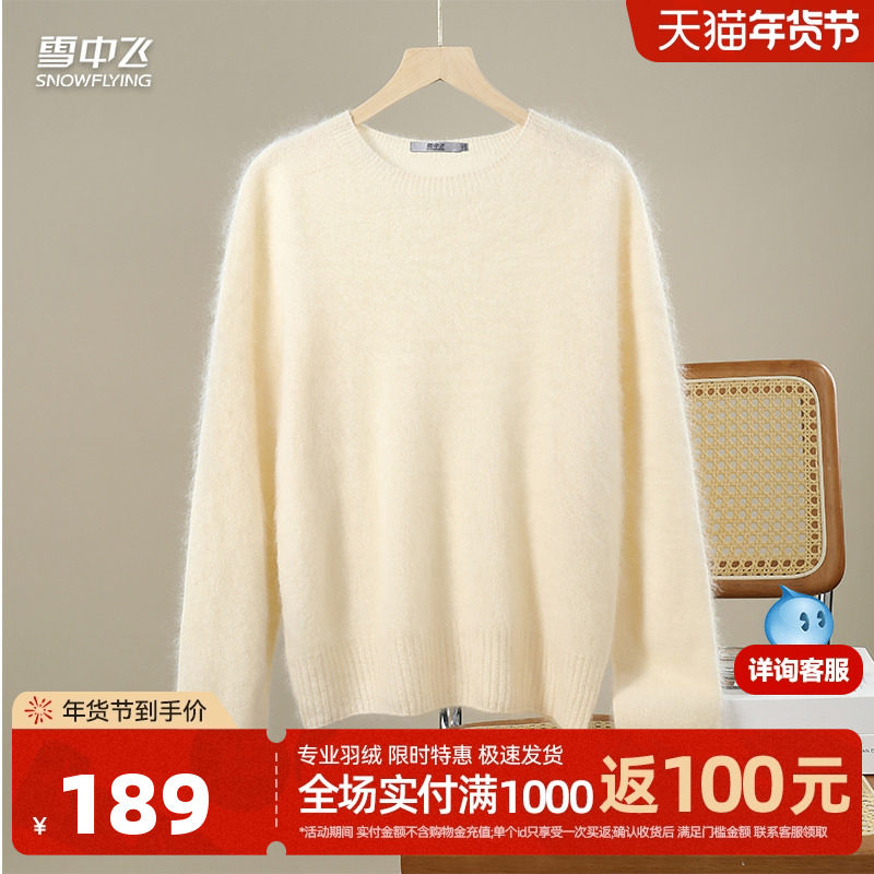 雪中飞2025秋新款含绵羊毛山羊绒保暖舒适纯色百搭女式羊毛衫 W