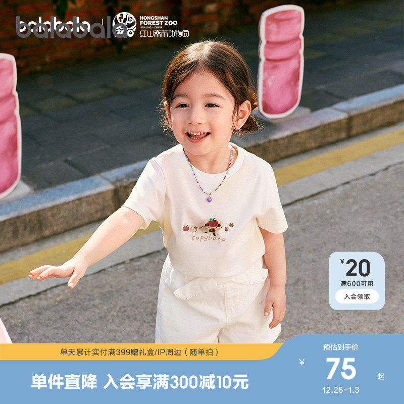 【红山森林动物园IP】巴拉巴拉女童短袖T恤2025夏装新款休闲上衣
