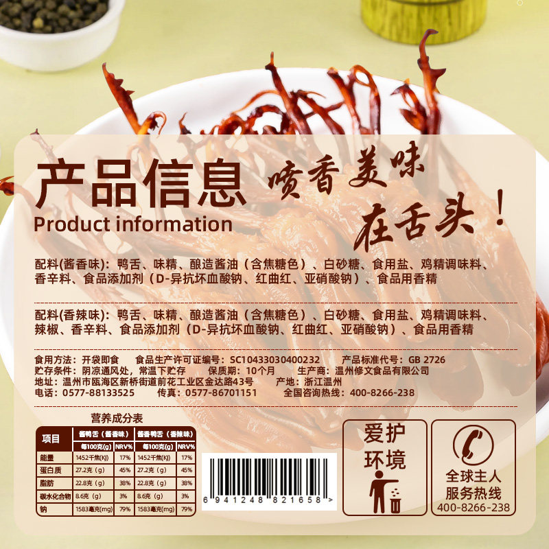 修文食品鸭舌头温州特产酱鸭舌原味大鸭舌零食开袋即食净重228g