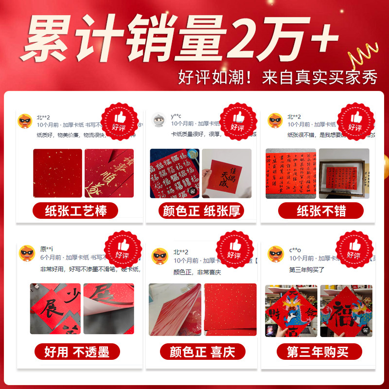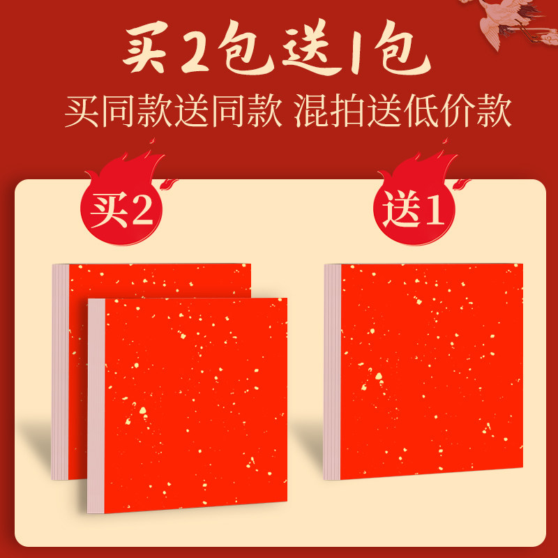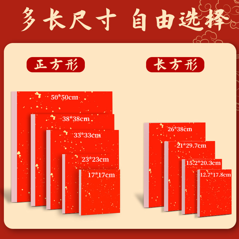 万年红洒金卡纸红色宣纸书法专用加厚福字斗方作品纸国画毛笔空白手写创作纸8寸A48K对联小春联纸半生熟婚书