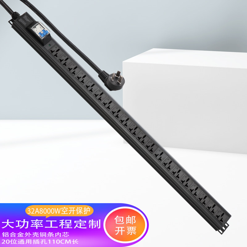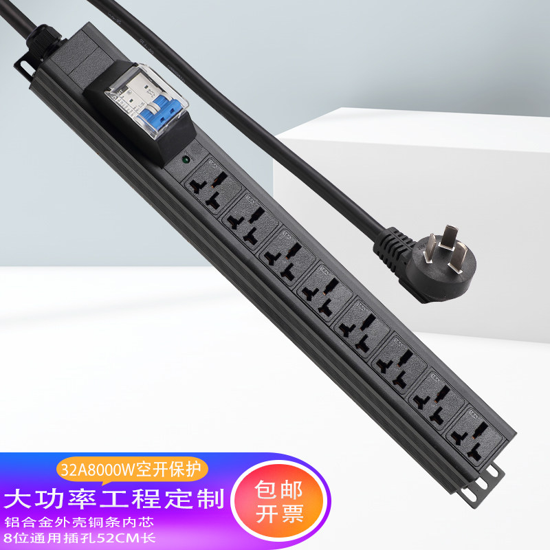 复龙大功率32A8000W工业轨道工作台测试架接线板铜条内芯铝合金外销漏电保护防过载排插座