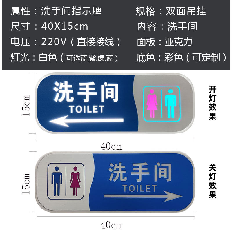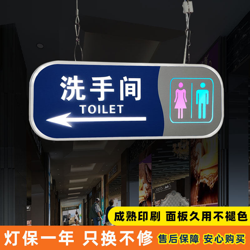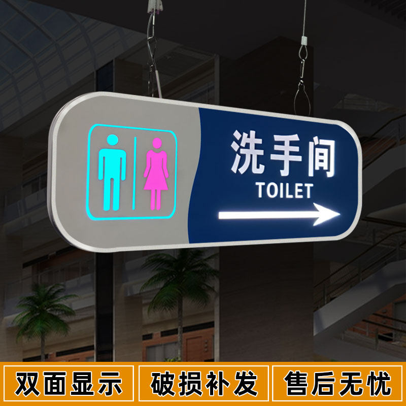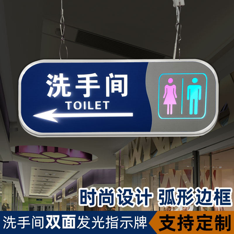 定制 面LED发光洗手间指示牌 创意吊挂带箭头厕所导向彩色标识