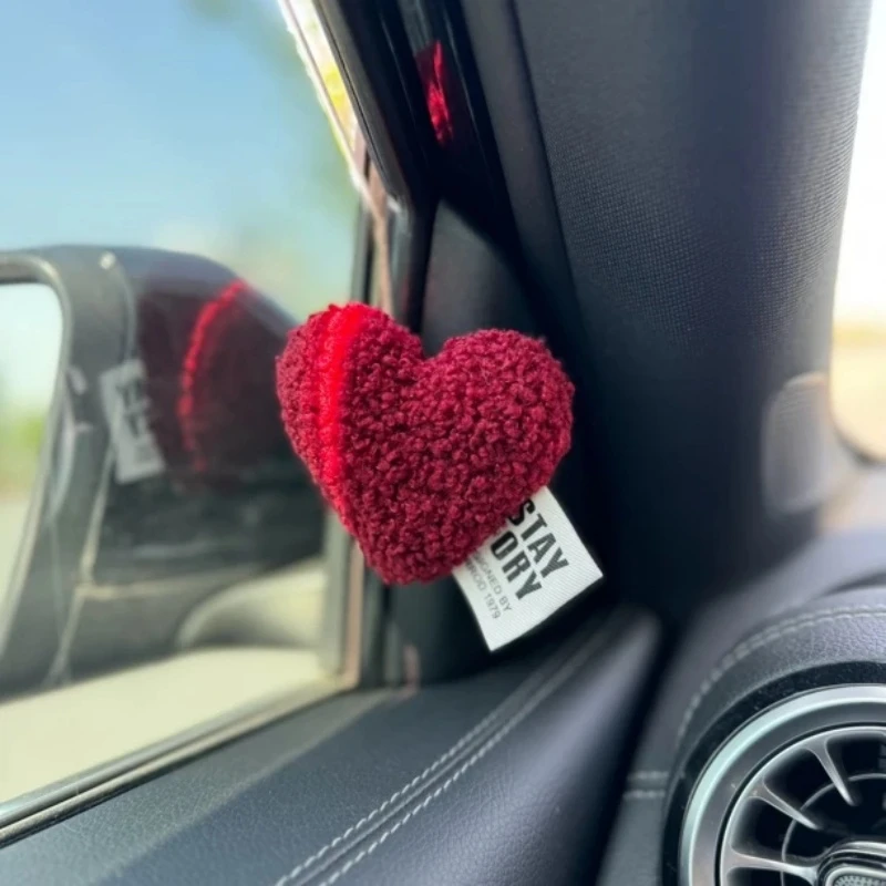 汽车毛绒爱心摆件心形可爱车载中控台屏幕后视镜装饰汽车内饰女生