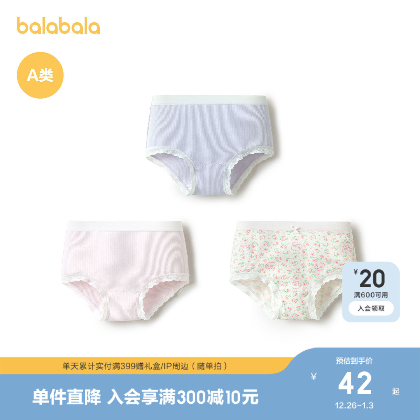 巴拉巴拉女童内裤棉a类儿童三角短裤子亲肤中大童小童宝宝三条装