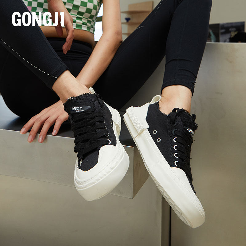 GONGJI帆布鞋男女情侣板鞋女款潮流低帮小白鞋国潮原创乞丐鞋布鞋