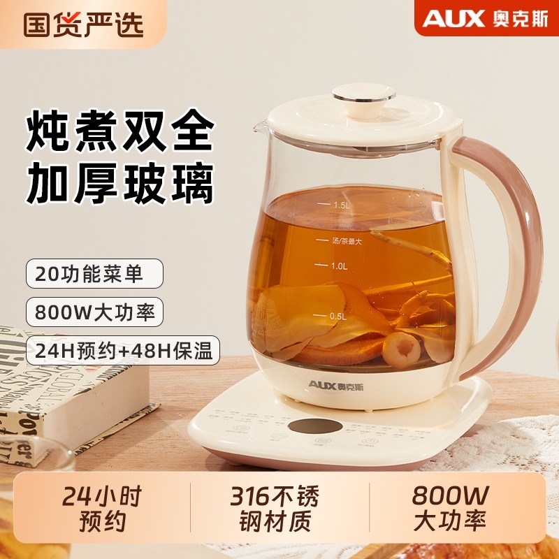 奥克斯养生壶家用多功能电热烧水壶自动保温炖煮玻璃壶煮茶大容量