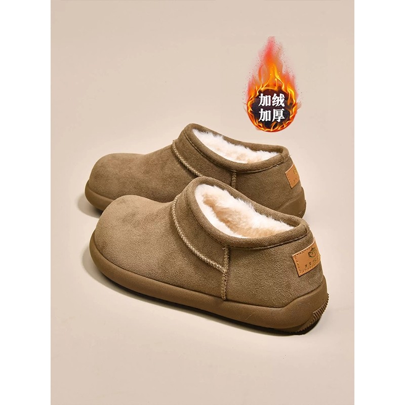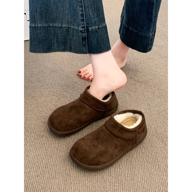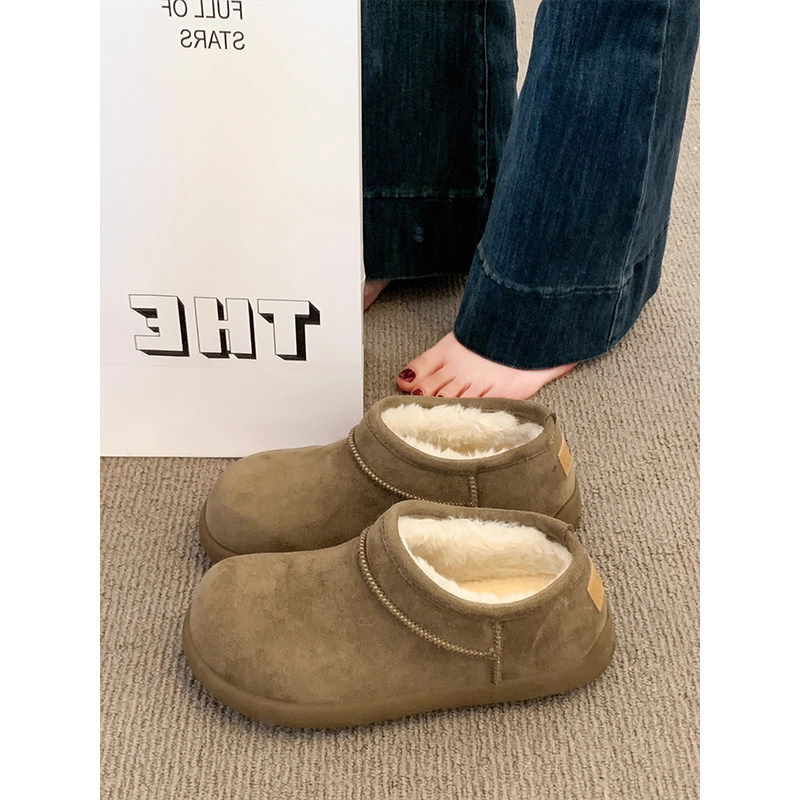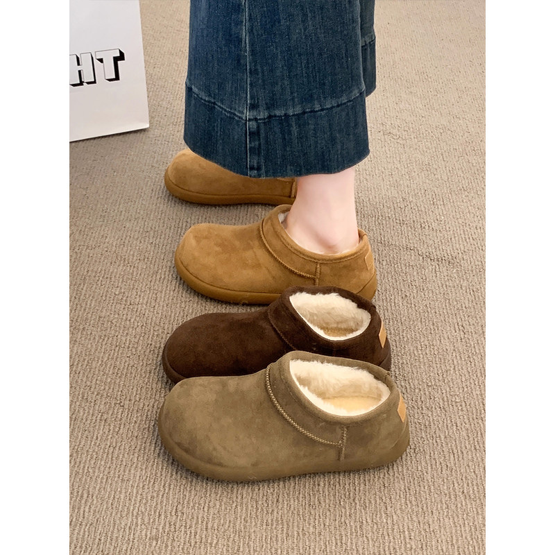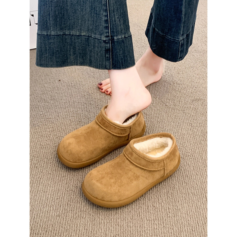 低帮厚底雪地靴女2025新款冬季懒人一脚蹬毛毛棉鞋加绒加厚女鞋子