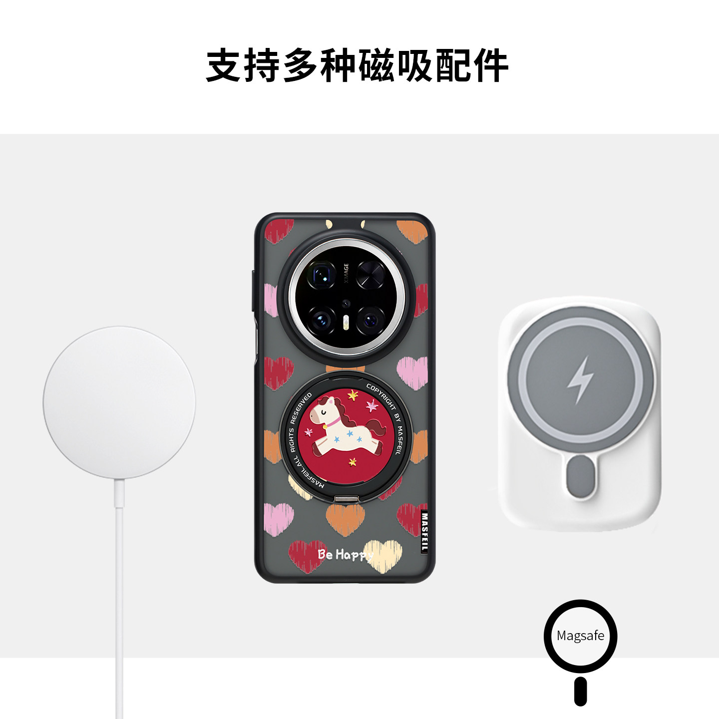 MASFEIL × 快乐小马适用华为mate80pro手机壳新款Pura70pro磁吸支点mate60支架Fo5全包可爱mt70por+高级套