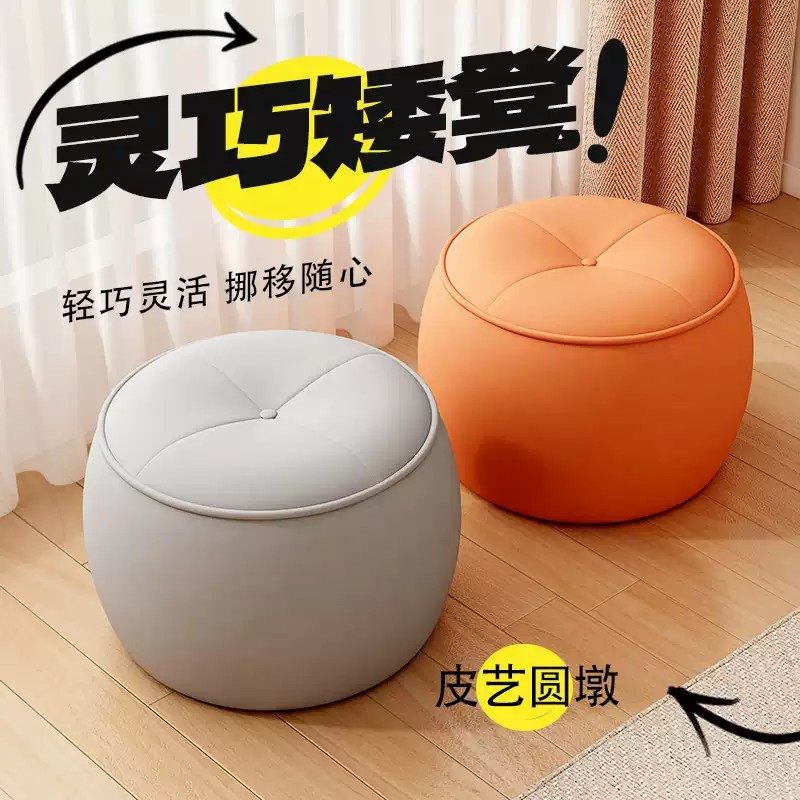 小凳子家用门口换鞋凳轻奢客厅沙发坐墩创意软包矮凳子南瓜凳卧室