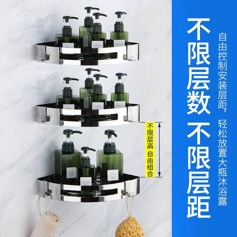 浴室三角架免打孔卫生间置物架304不锈钢厕所洗漱台收纳墙上壁挂