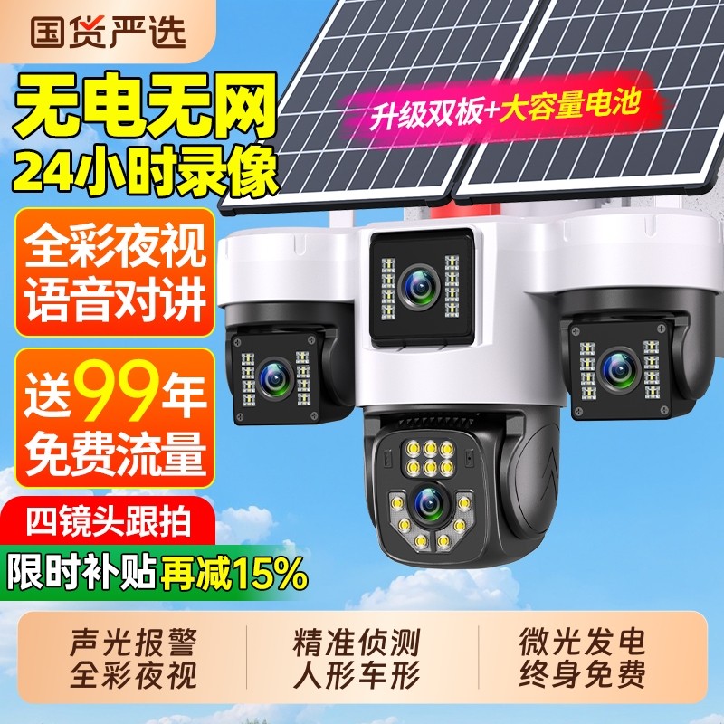 太阳能监控摄像室外360度无死角户外无电无网家用高清夜视摄影头