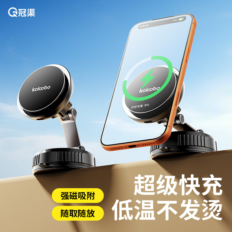冠渠无线充车载手机支架真空磁吸式散热车载汽车导航用专用吸盘2026新款MagSafe充电器快充通用桌面折叠底座