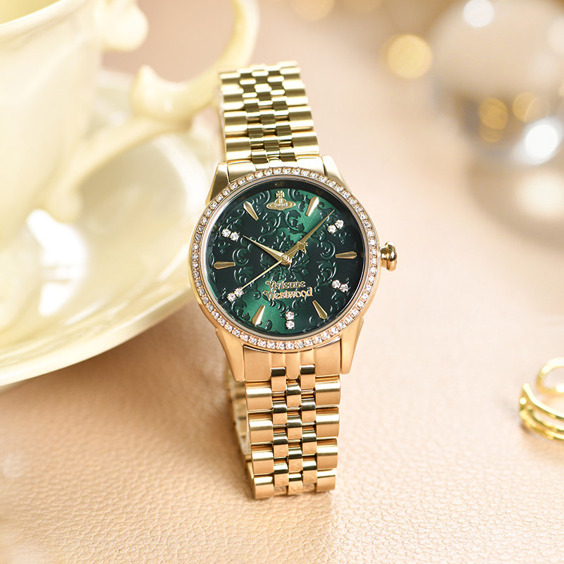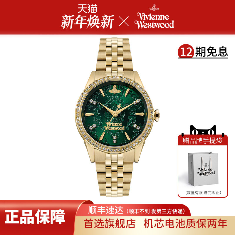 西太后手表女款2025新款绿色女表镶钻官方旗舰店女士石英表