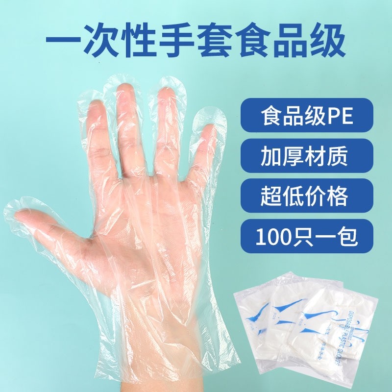 一次性手套食品级加厚手膜透明pe塑料薄膜自行车滑雪攀岩防滑薄款
