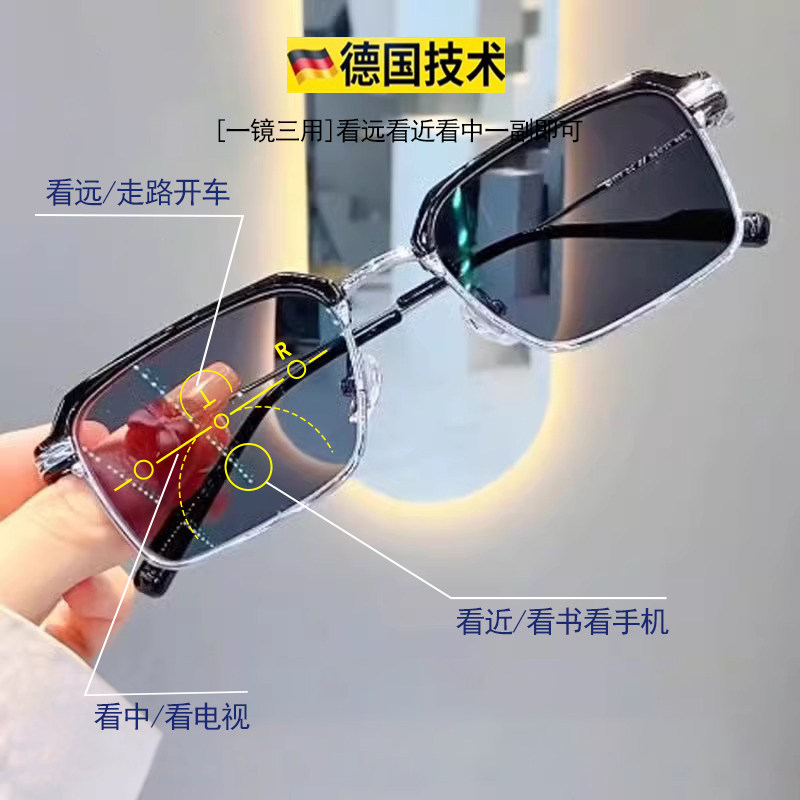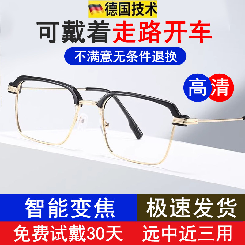 高档老花眼镜中老年高清老花镜男防蓝光老年人女多功能自动变焦镜