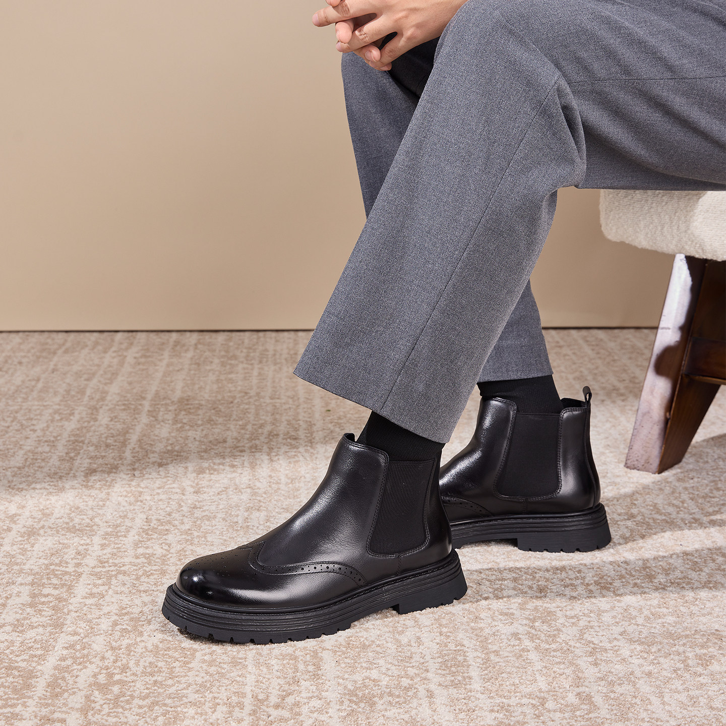 奥康 男鞋2025冬季新款切尔西靴商务正装工装皮鞋高帮防滑户外鞋